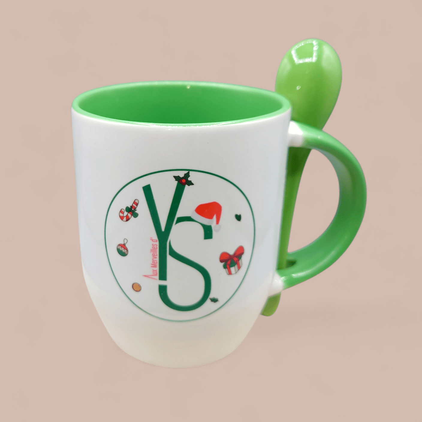 Ce Mug cuillère chatons de Noël vert n’est pas seulement beau : il est aussi ingénieusement pratique ! 🍵